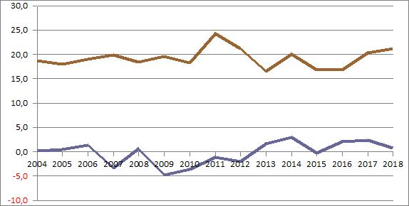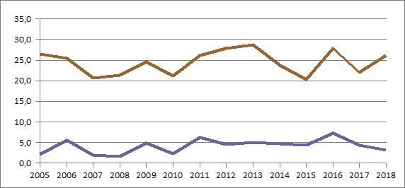 | 2018 | 784,6 | 113,8 | 35,3 | 64,8 | 48,6 | 75,5 | 125,5 | 77,2 | 51,3 | 28,2 | 30,2 | 19,2 | 115,0 |