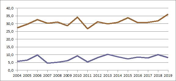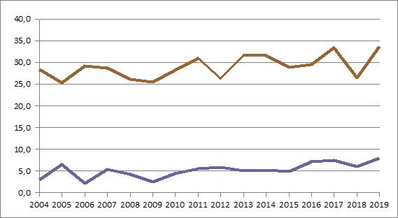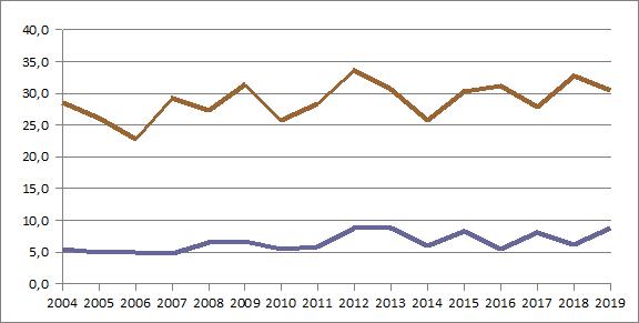 | 2019 | 809,0 | 82,5 | 69,3 | 68,4 | 62,2 | 100,1 | 27,8 | 27,5 | 52,9 | 81,2 | 100,2 | 69,9 | 67,0 |