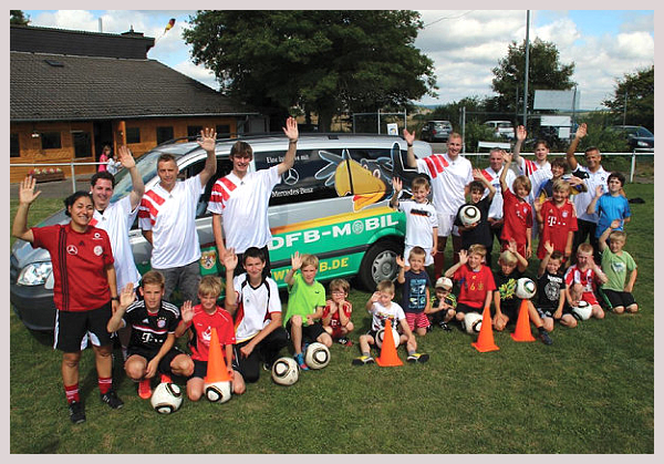 Das Team des DFB-Mobils unter fachmännischer Leitung der ehemaligen Bundesligaspielerin Marina Weidenbach und